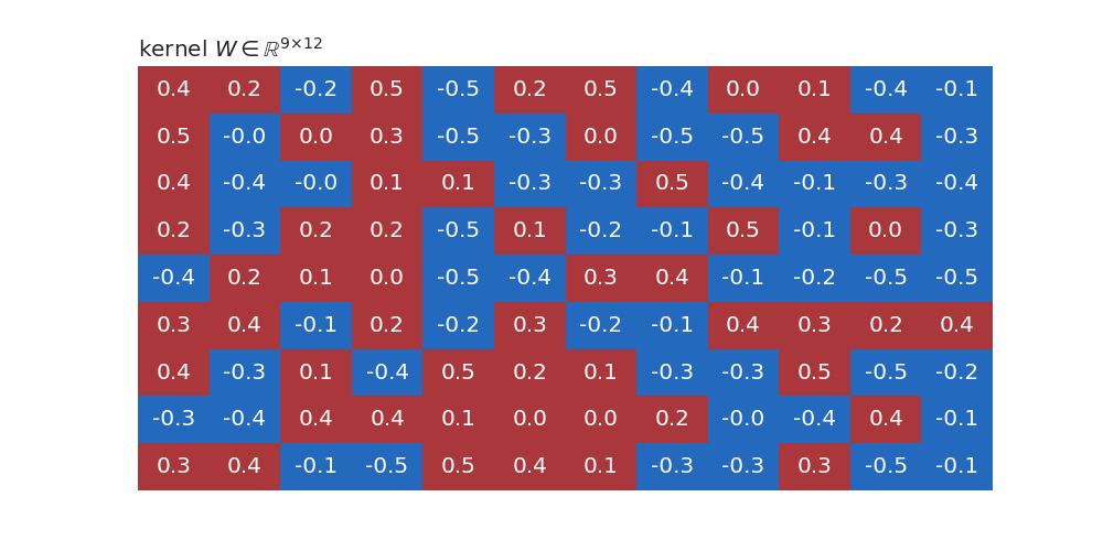 The figure below is an example of a kernel with 18 units and 12 input features.
